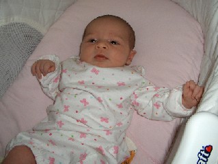 Savanna in her new bassinet.
