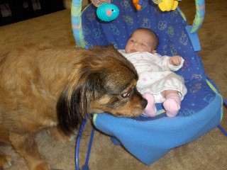 Mardie checking out his new sister